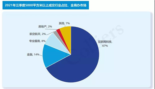 一方面,數(shù)字經(jīng)濟時代互聯(lián)網(wǎng)企業(yè)發(fā)展勢頭迅猛,中小科創(chuàng)企業(yè)層出不窮,為寫字樓產(chǎn)業(yè)園需求增長奠定了產(chǎn)業(yè)和企業(yè)基礎。高力國際報告顯示,三季度北京寫字樓市場需求持續(xù)復蘇,單季度凈吸納量達21.5萬平方米,其中5000平以上的大面積成交仍以互聯(lián)網(wǎng)科技類企業(yè)為主,占比高達65%。