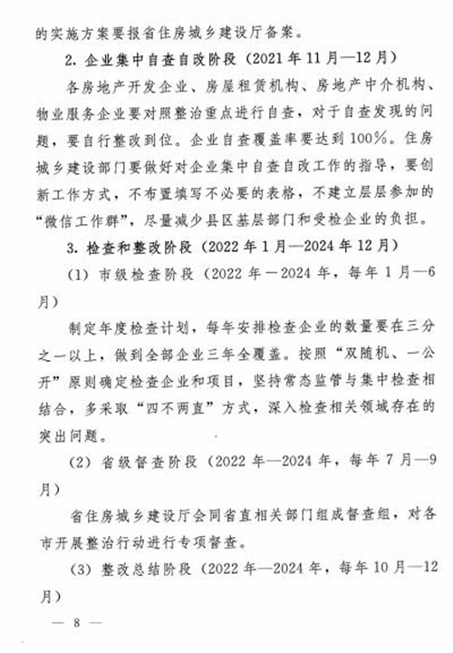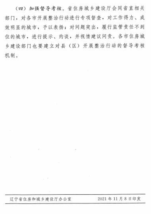 房訊網(wǎng)訊 11月10日,遼寧省住房和城鄉(xiāng)建設(shè)廳會(huì)同多部門聯(lián)合發(fā)布《遼寧省持續(xù)整治規(guī)范房地產(chǎn)市場秩序行動(dòng)方案》,要求各地以問題為導(dǎo)向,重點(diǎn)整治人民群眾反映強(qiáng)烈、社會(huì)關(guān)注度高的突出問題,維護(hù)房地產(chǎn)市場平穩(wěn)健康發(fā)展。集中整治行動(dòng)自2021年11月開始,持續(xù)到2024年12月。