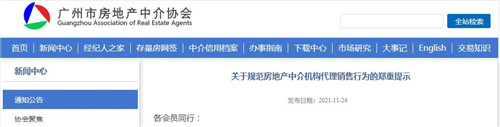 廣州市房地產(chǎn)中介協(xié)會(huì)要求會(huì)員按規(guī)定如實(shí)發(fā)布商品房銷售廣告、宣傳信息,不為違反法律法規(guī)及房地產(chǎn)市場(chǎng)調(diào)控政策的房屋提供服務(wù),希望各房地產(chǎn)中介服務(wù)機(jī)構(gòu)自通知發(fā)布之日起立即展開自查自糾工作,自覺抵制違法違規(guī)行為,嚴(yán)格按照相關(guān)法律法規(guī)加強(qiáng)管理、規(guī)范經(jīng)營(yíng)。