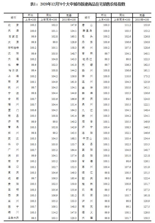 房訊網(wǎng)訊 1月15日,國(guó)家統(tǒng)計(jì)局發(fā)布12月份70個(gè)大中城市商品住宅銷售價(jià)格變動(dòng)情況,國(guó)家統(tǒng)計(jì)局城市司首席統(tǒng)計(jì)師繩國(guó)慶解讀表示,12月份各地深入貫徹黨中央、國(guó)務(wù)院部署,全面落實(shí)房地產(chǎn)長(zhǎng)效機(jī)制,因地制宜、多策并舉,促進(jìn)房地產(chǎn)市場(chǎng)平穩(wěn)健康發(fā)展,70個(gè)大中城市房地產(chǎn)市場(chǎng)價(jià)格穩(wěn)中略漲。