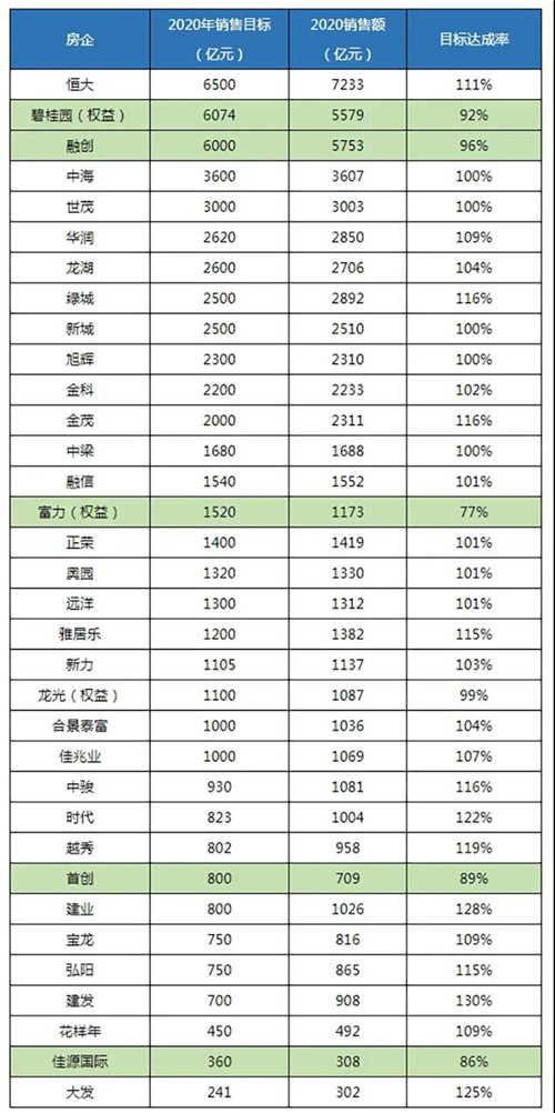 34家房企業(yè)績目標(biāo)平均達(dá)成率106%,五家房企未完成