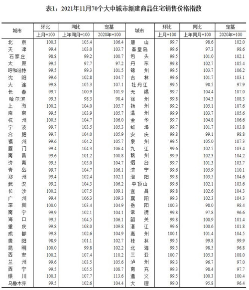 房訊網(wǎng)訊 12月15日,國家統(tǒng)計(jì)局發(fā)布2021年11月份商品住宅銷售價格變動情況,國家統(tǒng)計(jì)局城市司首席統(tǒng)計(jì)師繩國慶解讀表示,11月份商品住宅銷售價格環(huán)比總體下降,同比漲幅回落。