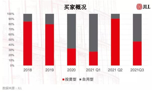 從物業(yè)類型分析,2021年第三季度辦公樓成交占總成交額的57.6%,環(huán)比上漲14.2%。仲量聯(lián)行認(rèn)為,一線城市強勁的辦公租賃需求讓投資者對于這一資產(chǎn)類別保有較強信心。