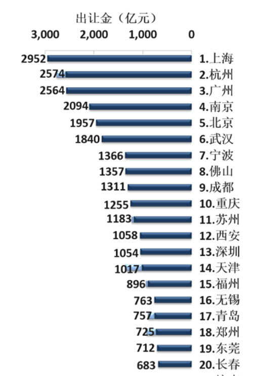 2020年土地出讓金額TOP20城市 數(shù)據(jù)來(lái)源:中指研究院