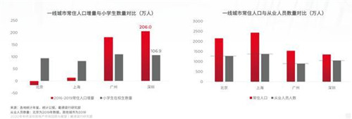 2、人口紅利支撐的潛在需求將在未來一段時期內穩(wěn)定深圳樓市需求旺盛。2016年-2019年,深圳常住人口增加206.1萬人,位居一線城市第一。2019年末,小學生在校數(shù)量僅次于廣州,未來發(fā)展動力強勁。此外,從業(yè)人員數(shù)量在常住人口中占比78%,其他一線城市均不及60%,城市活力更強。