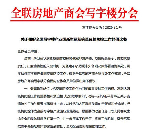 TOP1:關(guān)于做好全國寫字樓產(chǎn)業(yè)園新型冠狀病毒疫情防控工作的倡議書