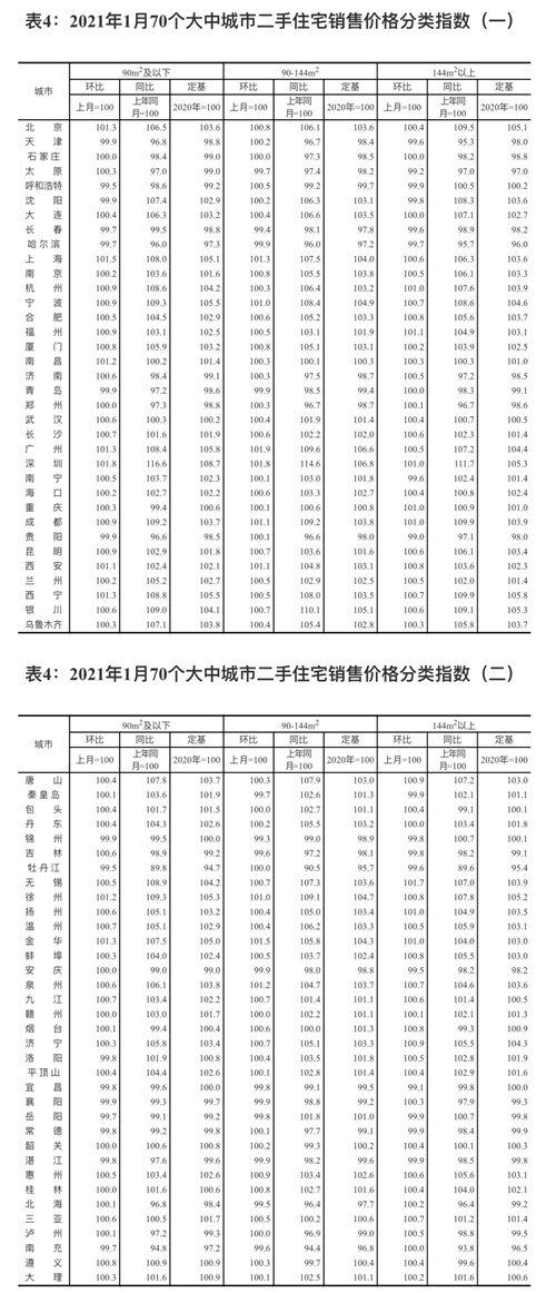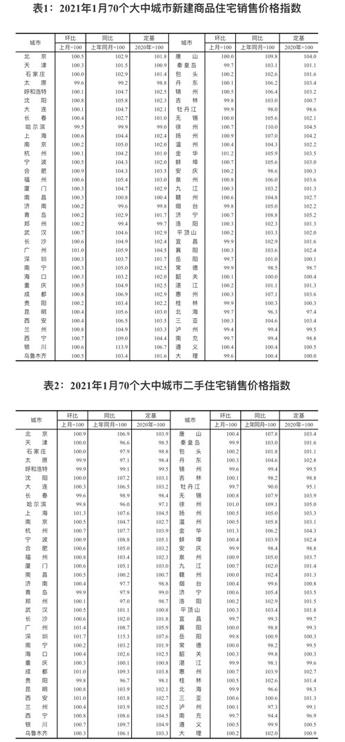 2月23日,國家統(tǒng)計局發(fā)布2021年1月70個大中城市商品住宅銷售價格變動情況。從全國70個大中城市房價數(shù)據(jù)看,2021年1月,70個大中城市中有53個城市的新建商品住宅價格上漲,較去年12月增加11個;二手房方面,70個大中城市中房價上漲的城市數(shù)量有49個,較去年12月同樣增加11個。