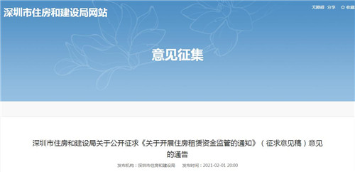 房訊網(wǎng)訊 2月1日,深圳市住房和建設(shè)局《關(guān)于開展住房租賃資金監(jiān)管的通知》(征求意見稿)公開征求社會公眾意見,《通知》從開設(shè)銀行專戶、實行租賃資金監(jiān)管、規(guī)范住房租金貸款、加強監(jiān)督管理等方面提出十八條舉措,規(guī)范住房租賃企業(yè)經(jīng)營,維護住房租賃當事人合法權(quán)益。