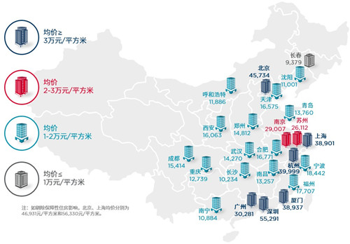 圖5:2020年重點(diǎn)城市新建住宅累計銷售均價分布示意圖