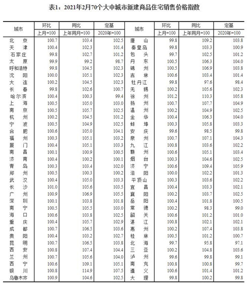 房訊網(wǎng)訊 15日,國家統(tǒng)計局發(fā)布2月份70個大中城市商品住宅銷售價格變動情況顯示,2021年2月份,各線城市商品住宅銷售價格環(huán)比漲幅有升有降,同比漲幅較上月有所上升。