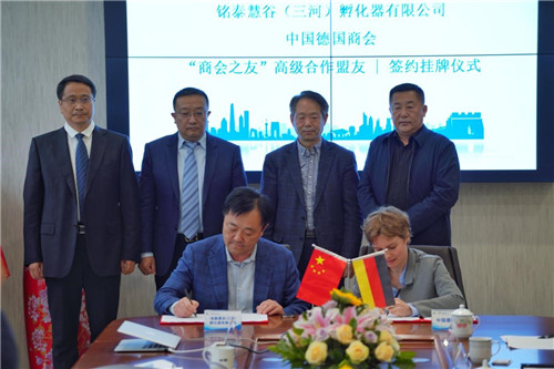 3月18日,銘泰慧谷(三河)孵化器有限公司與中國德國商會(huì)"商會(huì)之友"高級(jí)合作盟友簽約掛牌儀式在河北三河經(jīng)濟(jì)開發(fā)區(qū)銘泰產(chǎn)業(yè)園舉行。