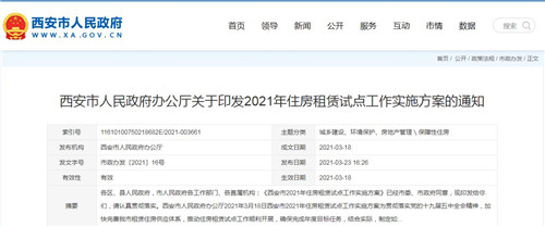 西安市人民政府辦公廳關(guān)于印發(fā)2021年住房租賃試點(diǎn)工作實(shí)施方案的通知