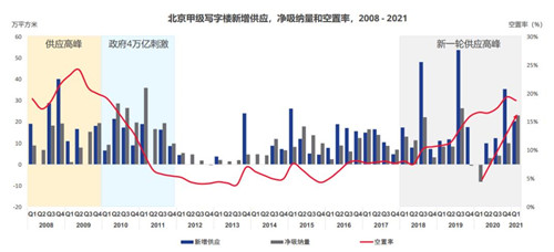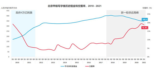 高力國(guó)際分析認(rèn)為,大幅的季度新增需求反彈或?qū)⒉豢沙掷m(xù),季度新增需求后續(xù)將會(huì)逐步回歸到疫情前的水平。我們依然維持市場(chǎng)處于三期疊加的判斷,依然維持宏觀經(jīng)濟(jì)增長(zhǎng)穩(wěn)步復(fù)蘇,北京疫情防控有效和寫(xiě)字樓需求中性釋放的三個(gè)基礎(chǔ)宏觀條件,并預(yù)計(jì)空置率在2021年觸頂和租金探底的基本研判。