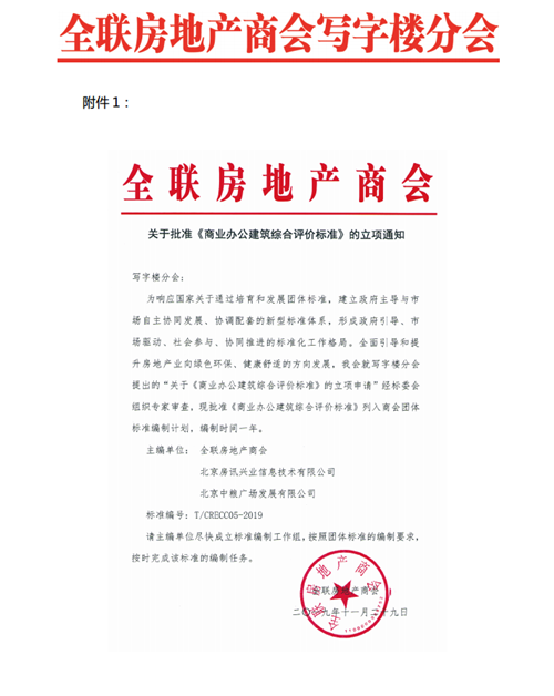 1、全聯(lián)房地產(chǎn)商會《商業(yè)辦公建筑綜合評價標(biāo)準(zhǔn)》批準(zhǔn)文件