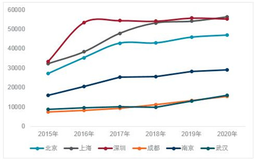 圖五:2015-2020年主要城市住宅價(jià)格走勢(shì)