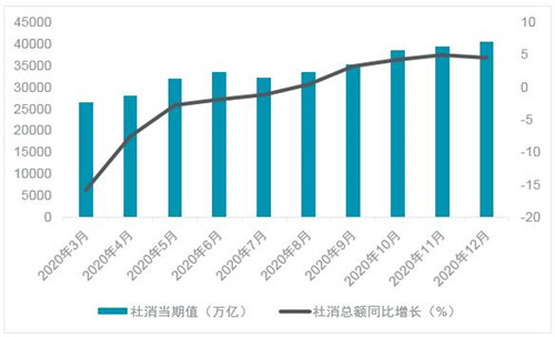 圖四:2020年社會(huì)消費(fèi)品零售總額走勢(shì)