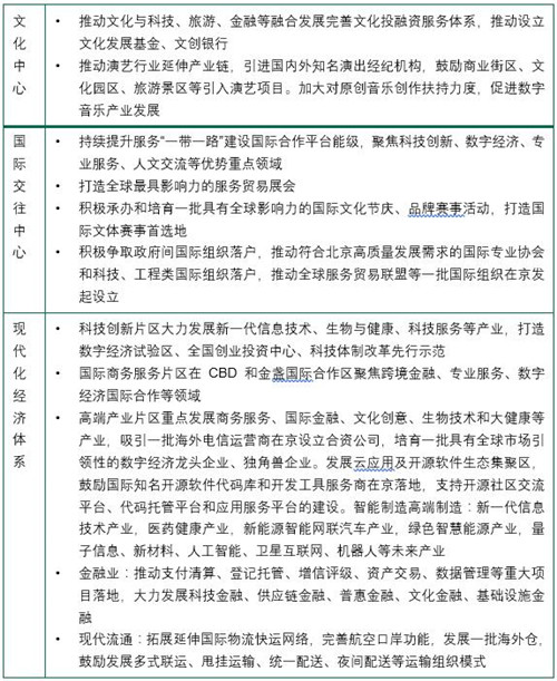 更詳細(xì)地闡述重點區(qū)域產(chǎn)業(yè)/功能定位,重點突出"兩區(qū)"(國家服務(wù)業(yè)擴大開放綜合示范區(qū)和中國(北京)自由貿(mào)易試驗區(qū))、城市副中心和"三城一區(qū)"(中關(guān)村科學(xué)城、懷柔科學(xué)城、未來科學(xué)城和北京經(jīng)濟技術(shù)開發(fā)區(qū))的產(chǎn)業(yè)承載功能;
