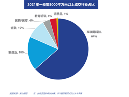 此外,當(dāng)前互聯(lián)網(wǎng)公司依舊維持了迅猛的擴(kuò)張速度。在2020年全年5000平米以上的大宗租賃成交中,互聯(lián)網(wǎng)科技公司的成交面積占比達(dá)到42%,遠(yuǎn)高于第二名金融行業(yè)的18.8%,在今年一季度這個(gè)比例更是上升到64%。這個(gè)比例還沒(méi)有計(jì)入去年融資如火如荼的在線教育行業(yè),如果把在線教育新租面積也計(jì)入的話,2020年的互聯(lián)網(wǎng)科技行業(yè)占比超過(guò)50%,今年一季度的占比更是接近70%。
