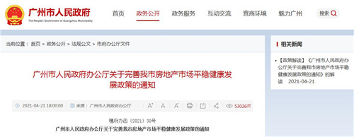 廣州市人民政府辦公廳關(guān)于完善我市房地產(chǎn)市場平穩(wěn)健康發(fā)展政策的通知