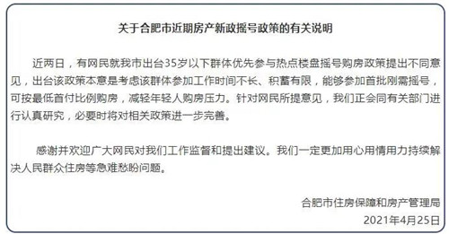 合肥再回應(yīng)“剛需35歲限制”