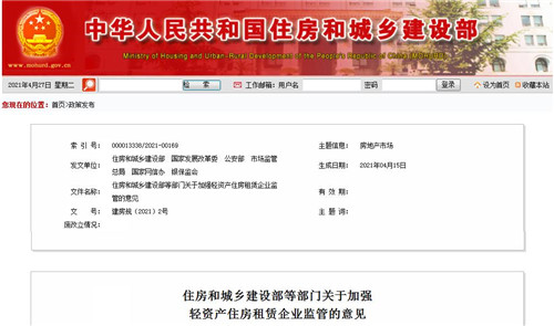 住房和城鄉(xiāng)建設部等部門關于加強輕資產(chǎn)住房租賃企業(yè)監(jiān)管的意見