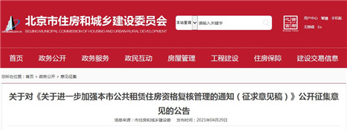房訊網(wǎng)訊 4月29日,北京市住建委公布《關于進一步加強本市公共租賃住房資格復核管理的通知(征求意見稿)》,面向社會公開征求意見,從進一步簡化家庭復核申報材料、明確定期復核家庭申報期限、優(yōu)化復核工作程序、加大信息比對核查力度、加強公租房分配管理等方面加強公共租賃住房建設和管理。