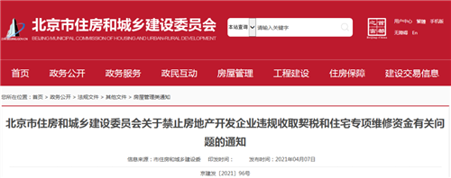 為制止開發(fā)企業(yè)違規(guī)收取契稅和住宅專項(xiàng)維修資金,切實(shí)保障購房家庭合法權(quán)益,北京市住建委在《通知》中要求: