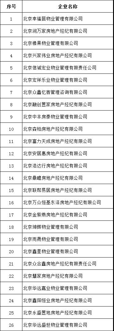 近期,北京市住建委執(zhí)法部門持續(xù)著力解決好人民群眾“急難愁盼”的問題,聯(lián)合朝陽房管局、海淀房管局、豐臺房管局、通州住建委、石景山住建委、昌平住建委、順義住建委開展房地產(chǎn)市場檢查,線上線下兩手抓,嚴查發(fā)布委托手續(xù)不全、炒作學區(qū)房、違規(guī)商改住、違規(guī)群租、代理出租不符合交易條件房屋等違法違規(guī)行為,26家機構被查處,名單如下: