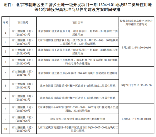 北京規(guī)自委:10宗地塊投報(bào)高標(biāo)準(zhǔn)住宅建設(shè)方案時(shí)間安排