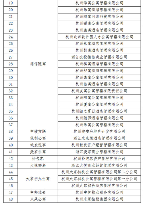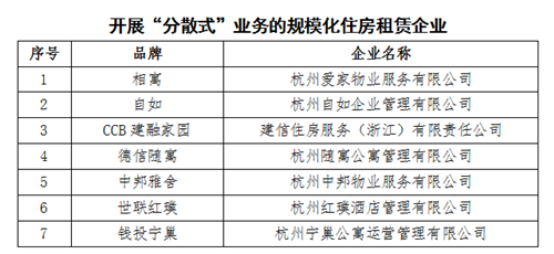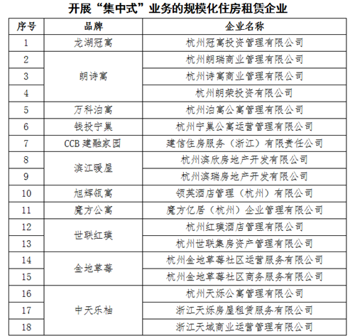 房訊網(wǎng)訊 5月18日,杭州召開住房租賃市場規(guī)范發(fā)展會議,根據(jù)企業(yè)落實資金監(jiān)管實際情況,會議公布了首批50家落實資金監(jiān)管的規(guī)模化住房租賃企業(yè)“白名單”,包括“杭州冠寓投資管理有限公司”等48家從事“集中式”住房租賃業(yè)務(wù)的企業(yè)、“杭州愛家物業(yè)服務(wù)有限公司”等7家從事“分散式”住房租賃業(yè)務(wù)的企業(yè)(其中5家同時開展“集中式”住房租賃業(yè)務(wù))。