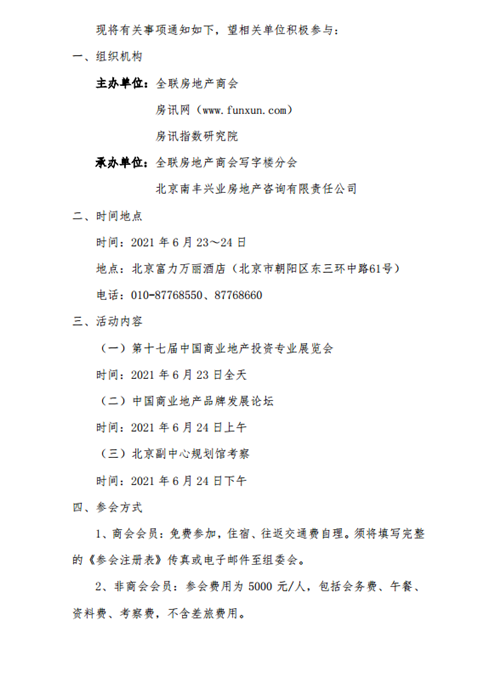 房訊網(wǎng)訊 2021年6月23-24日,第十七屆中國商業(yè)地產(chǎn)投資專業(yè)展覽會暨第三屆中國商業(yè)地產(chǎn)品牌發(fā)展論壇將一如既往在北京富力萬麗酒店盛大舉辦,主題為"商業(yè)向上,與城市共生長"。