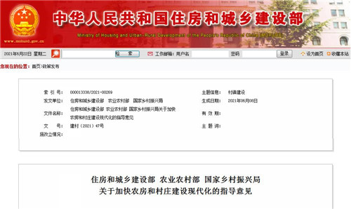 房訊網(wǎng)訊 為深入貫徹落實(shí)黨的十九屆五中全會(huì)精神和“十四五”規(guī)劃綱要關(guān)于實(shí)施鄉(xiāng)村建設(shè)行動(dòng)的部署要求,加快推進(jìn)農(nóng)房和村莊建設(shè)現(xiàn)代化,提高農(nóng)房品質(zhì),提升鄉(xiāng)村建設(shè)水平,近日,住房和城鄉(xiāng)建設(shè)部、農(nóng)業(yè)農(nóng)村部、國(guó)家鄉(xiāng)村振興局聯(lián)合印發(fā)《關(guān)于加快農(nóng)房和村莊建設(shè)現(xiàn)代化的指導(dǎo)意見》,從生態(tài)友好、農(nóng)房設(shè)計(jì)建造水平、營(yíng)造留住“鄉(xiāng)愁”環(huán)境等12個(gè)方面提出了加快農(nóng)房和村莊建設(shè)現(xiàn)代化的具體要求,并指出要因地制宜、分省制定實(shí)施方案、開展試點(diǎn)做好組織實(shí)施工作。