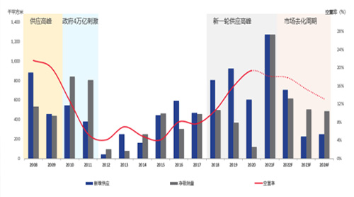 2022年開始,市場進(jìn)入去化周期,空置面積將逐步被市場消化