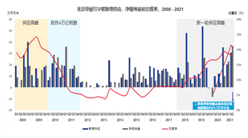 北京甲級寫字樓新增供應(yīng),凈吸納量和空置率,