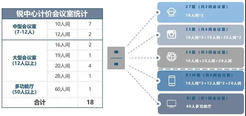 一共18間,小中大型會議室一應俱全,完全能夠覆蓋從初創(chuàng)型公司到大型企業(yè)的會議需求;