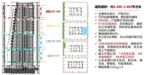 項目總體量15.6萬平方米,主樓高200米,共42層,商業(yè)裙樓3層,地下共5層。