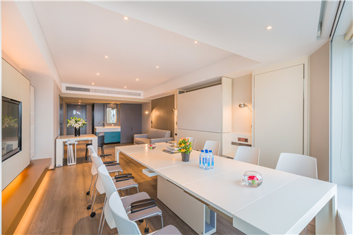 辦公模式和酒店模式的雙向切換,讓同一個空間演變出更多的可能性。不同規(guī)格的多功能會議室、健身房、露天花園、范兒餐廳和藝術畫廊等系列工作、休閑配套,為Funhub創(chuàng)建了全新的生活方式。