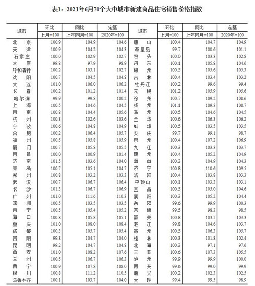 房訊網(wǎng)訊 7月15日,國家統(tǒng)計局發(fā)布6月份70個大中城市商品住宅銷售價格變動情況,數(shù)據(jù)顯示,6月份70個大中城市商品住宅銷售價格漲幅整體呈現(xiàn)穩(wěn)中有落的態(tài)勢。