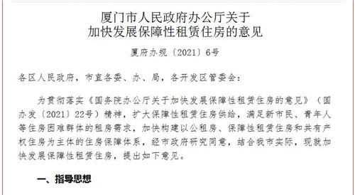 房訊網(wǎng)訊 近日,廈門市人民政府辦公廳發(fā)布關(guān)于加快發(fā)展保障性租賃住房的意見,堅持“房子是用來住的、不是用來炒的”定位,以深化住房供給側(cè)結(jié)構(gòu)性改革為主線,擴大保障性租賃住房供給,加快構(gòu)建多主體供給、多渠道保障、租購并舉住房制度,不斷提升住房保障水平。