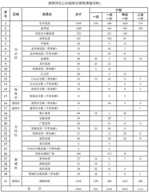 房訊網(wǎng)訊 據(jù)廣州市住建局消息,廣州市2021年戶籍家庭公共租賃住房共8763套,于7月27日起接受符合申請公租房條件的輪候家庭意向登記,10月27日公開進行搖號預(yù)分配。本次推出分配的公共租賃住房房源點共有31個,總套數(shù)為8763套。