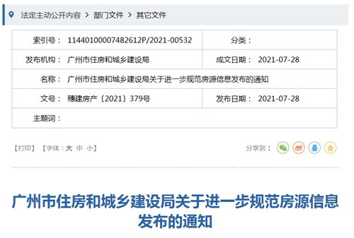 廣州市住房和城鄉(xiāng)建設(shè)局關(guān)于進一步規(guī)范房源信息發(fā)布的通知