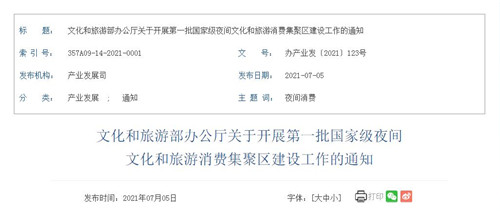 文化和旅游部辦公廳關(guān)于開展第一批國家級夜間文化和旅游消費(fèi)集聚區(qū)建設(shè)工作的通知