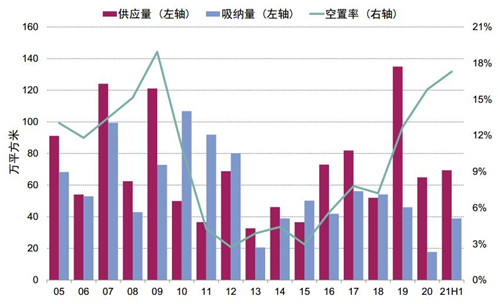 2021年二季度,北京寫字樓市場的租賃需求呈現(xiàn)井噴,市場活躍度持續(xù)提升,企業(yè)新租、擴(kuò)租、搬遷等市場活動(dòng)促成了若干宗重要成交。二季度,北京甲級(jí)寫字樓市場共迎來四座新項(xiàng)目入市,供應(yīng)量約為37.6萬平方米;而本季度凈吸納量繼續(xù)快速提升,約為22.4萬平方米,環(huán)比增長34.7%、約為去年同期的七倍。北京甲級(jí)寫字樓平均租金為每月每平方米人民幣341.3元,平均租金指數(shù)環(huán)比、同比分別下降0.3%、3.6%,但租金降幅有所收窄。全市空置率為17.3%,環(huán)比、同比分別上漲0.7、3.6個(gè)百分點(diǎn)。就2021年上半年而言,北京寫字樓市場已經(jīng)完全擺脫疫情的影響,市場需求得到充分釋放,但由于下半年新增供應(yīng)量仍然巨大,未來一段時(shí)間全市寫字樓仍將面臨較大去化壓力。