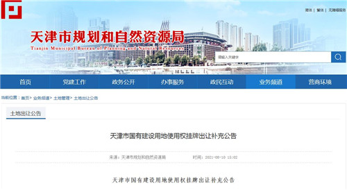 房訊網訊 8月10日,天津市規(guī)劃和自然資源局各區(qū)分局和天津市土地利用事務中心發(fā)布《天津市國有建設用地使用權掛牌出讓補充公告》,提出61宗國有建設用地使用權公開掛牌出讓的公告時間延長至2021年8月31日,掛牌起始時間統(tǒng)一調整為2021年9月1日9:00起,掛牌截止時間統(tǒng)一調整為2021年9月10日(具體詳見掛牌出讓文件)。競買保證金到賬截止時間及競買報名截止時間統(tǒng)一調整為2021年9月8日16:30。
