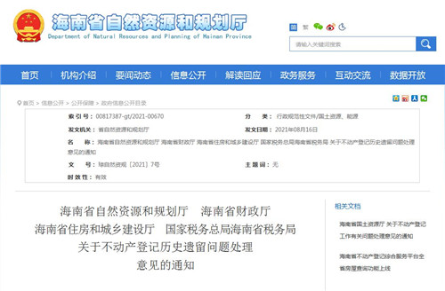 房訊網(wǎng)訊 近日,海南省自然資源和規(guī)劃廳、海南省財(cái)政廳、海南省住房和城鄉(xiāng)建設(shè)廳、國家稅務(wù)總局海南省稅務(wù)局聯(lián)合下發(fā)《關(guān)于不動(dòng)產(chǎn)登記歷史遺留問題處理意見的通知》,對(duì)不動(dòng)產(chǎn)登記基本原則、適用范圍、解決政策和方法等作出明確要求。本通知自發(fā)布之日起實(shí)施,有效期3年。