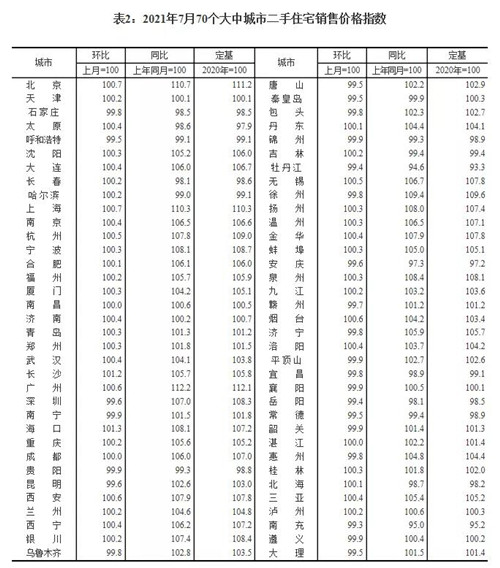 同比比較,7月份,二線城市新建商品住宅銷售價(jià)格同比上漲4.7%,漲幅比上月回落0.1個(gè)百分點(diǎn);二手住宅銷售價(jià)格同比上漲3.5%,漲幅與上月相同。三線城市新建商品住宅和二手住宅銷售價(jià)格同比分別上漲3.3%和2.3%,漲幅比上月分別回落0.4和0.3個(gè)百分點(diǎn)。