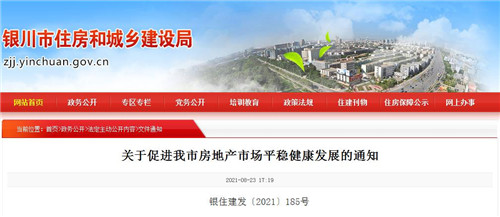 房訊網(wǎng)訊 8月23日,銀川市住建局聯(lián)合其他十一家政府部門(mén)發(fā)文,出臺(tái)了《關(guān)于促進(jìn)我市房地產(chǎn)市場(chǎng)平穩(wěn)健康發(fā)展的通知》,即日起施行。