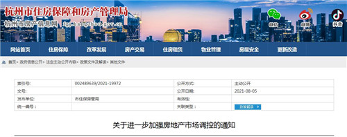 房訊網(wǎng)訊 8月5日,杭州市房地產(chǎn)市場平穩(wěn)健康發(fā)展領(lǐng)導(dǎo)小組辦公室發(fā)布《關(guān)于進(jìn)一步加強(qiáng)房地產(chǎn)市場調(diào)控的通知》,從加強(qiáng)住房限購、完善新建商品住房銷售管理、規(guī)范市場秩序三方面進(jìn)一步加強(qiáng)調(diào)控。