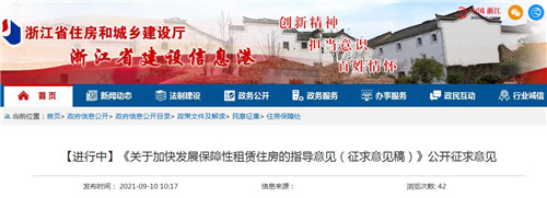 房訊網(wǎng)訊 9月10日,浙江省住建廳官網(wǎng)發(fā)布《關(guān)于加快發(fā)展保障性租賃住房的指導(dǎo)意見(征求意見稿)》,向社會公開征求意見。