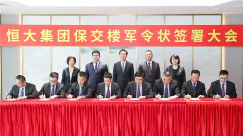 集團(tuán)8位副總裁代表專項(xiàng)工作組簽署軍令狀(圖源:恒大集團(tuán)官微)
